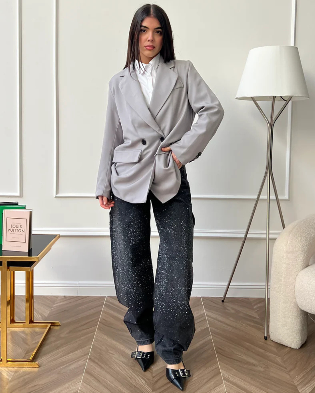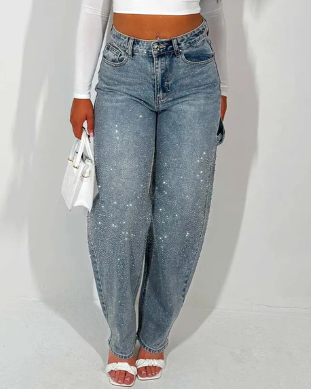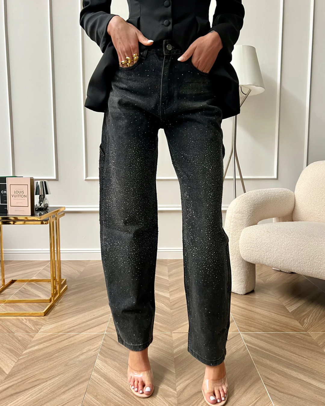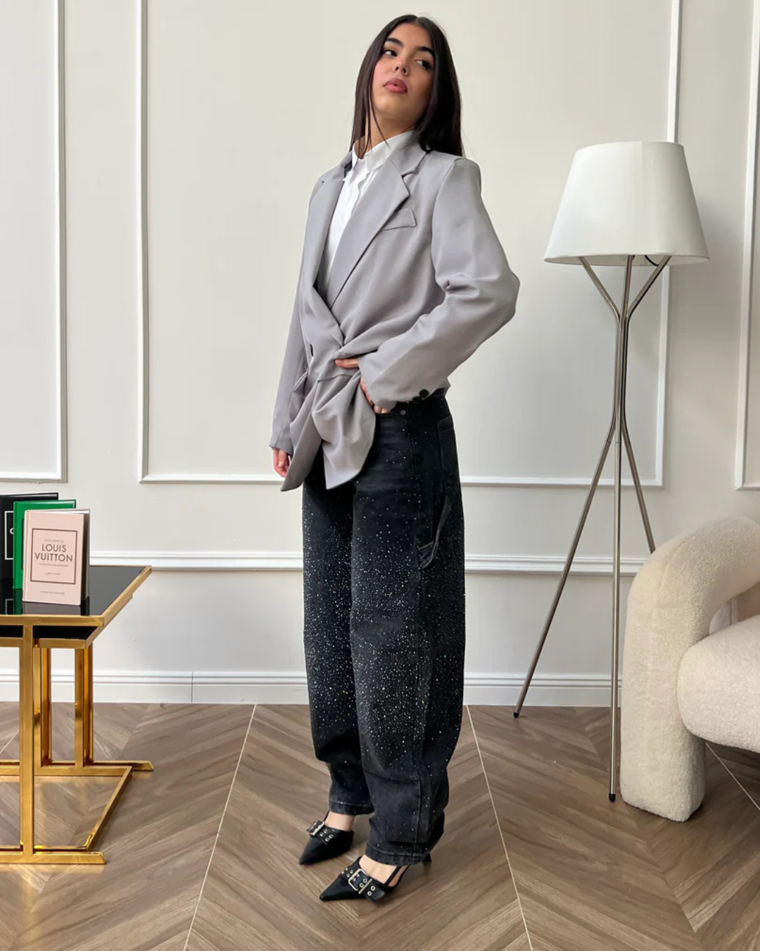 Aplicarea strategică a detaliilor cu diamante face ca acești blugi să fie unici și sofisticați. Indiferent dacă îți dorești un look casual chic sau unul mai îndrăzneț, sunt alegerea perfectă pentru a ieși în evidență.