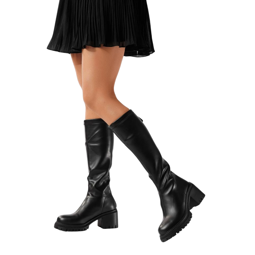 Confecționate dintr-un material sintetic cu aspect lustruit și moale la atingere. Acest material este rezistent și necesită întreținere minimă, permițând cizmei să își mențină aspectul impecabil cu o îngrijire redusă.