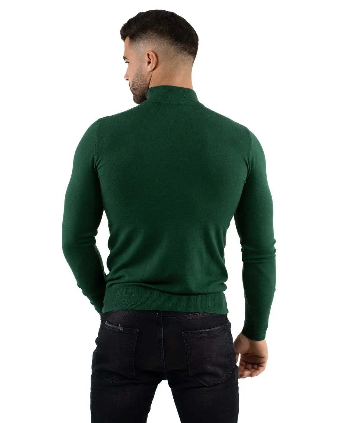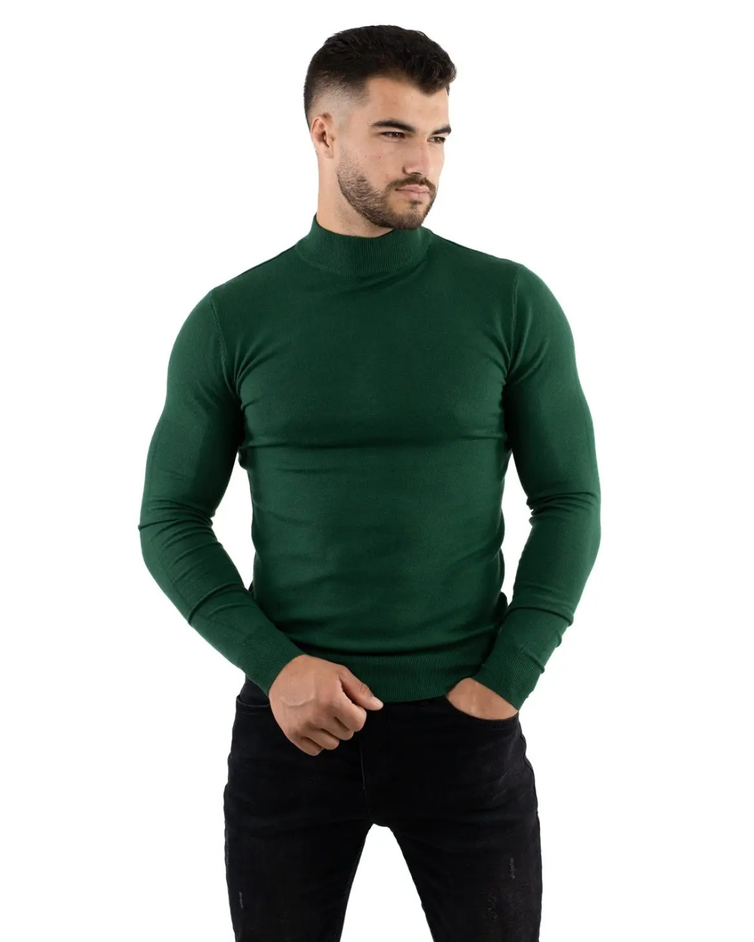 Acest pulover cu guler semi-înalt oferă un aspect curat și actual, perfect pentru cei care caută stilul fără complicații. Designul său ajustat pune în valoare silueta în mod natural, conferind o prezență elegantă în orice moment. O piesă concepută pentru a ieși în evidență cu discreție și bun gust.
