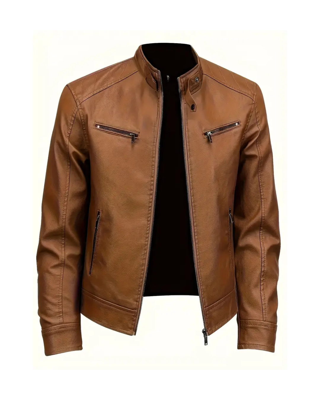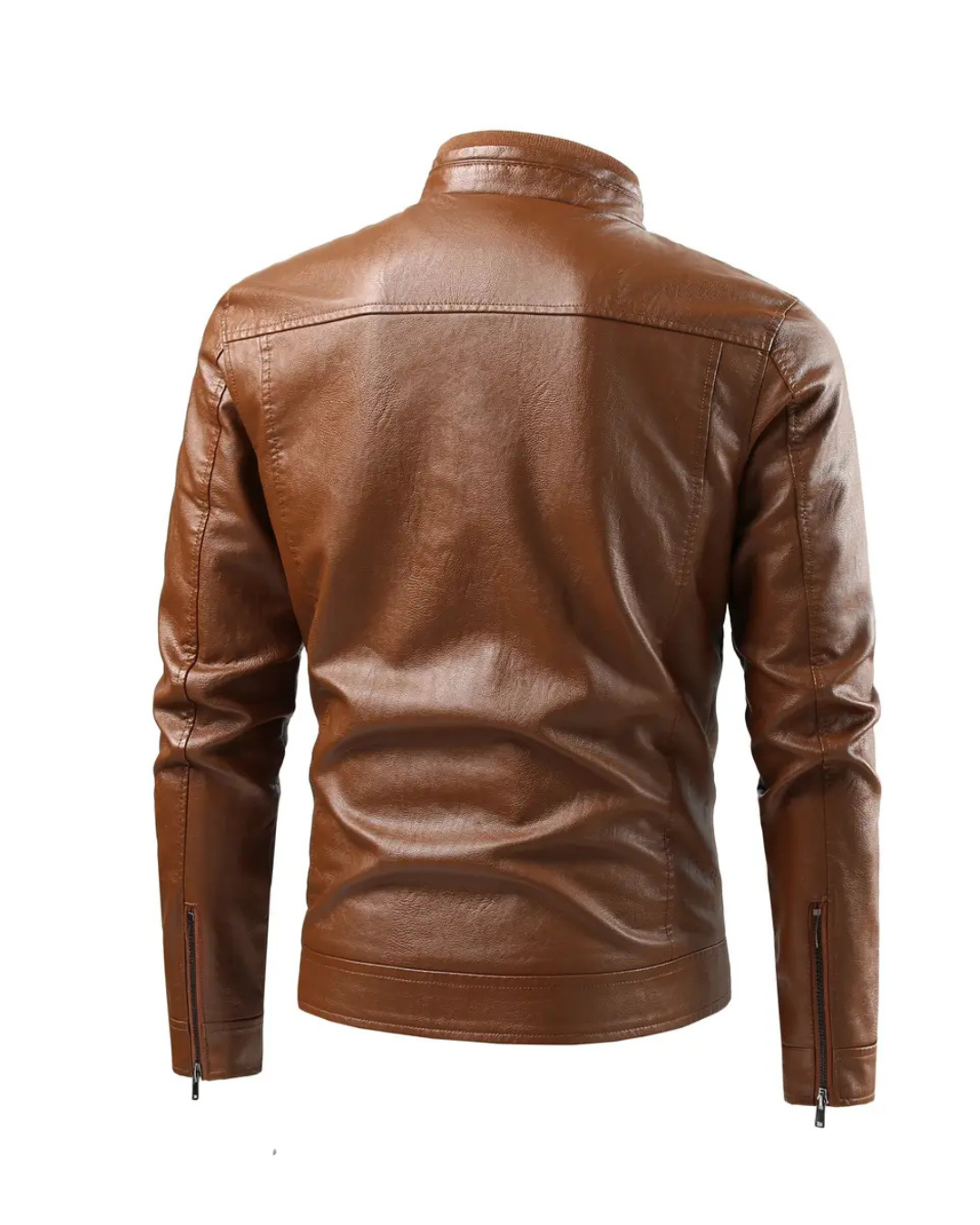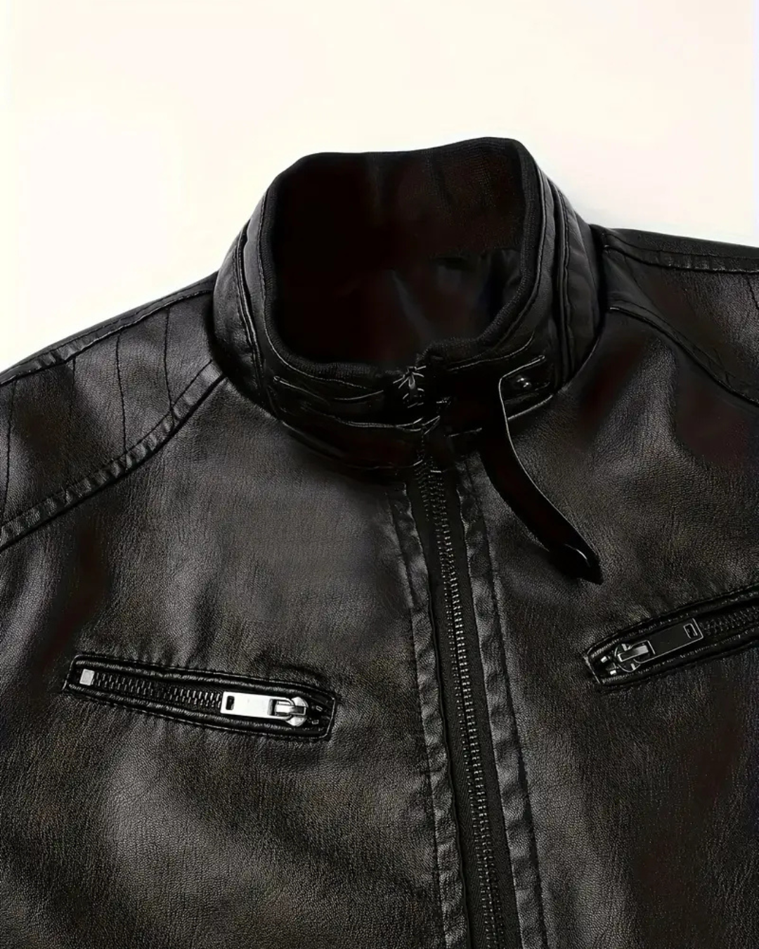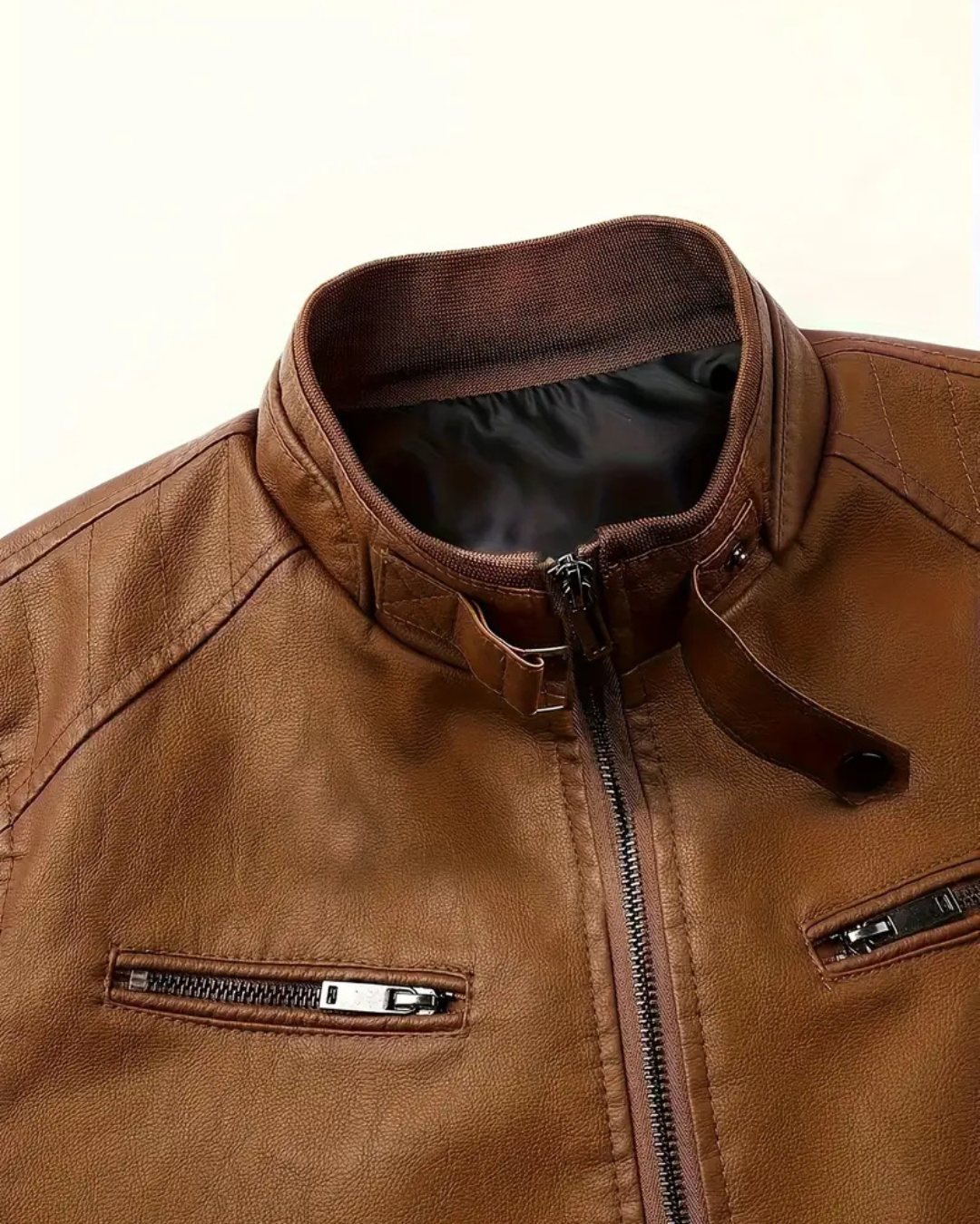 Jacheta din piele pentru bărbați, cu croială rustică și finisaj clasic