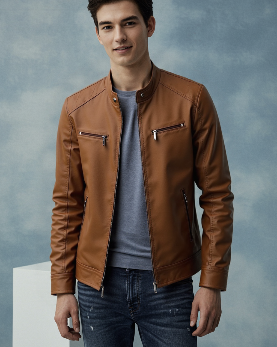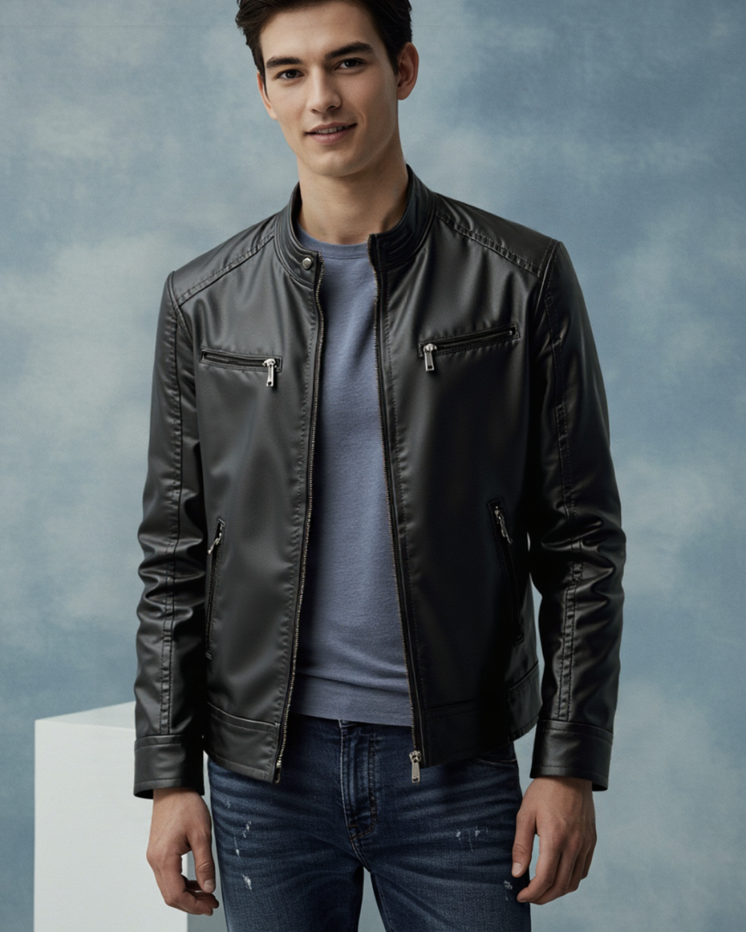 Piele cu estetică biker și detalii moderne pentru bărbați