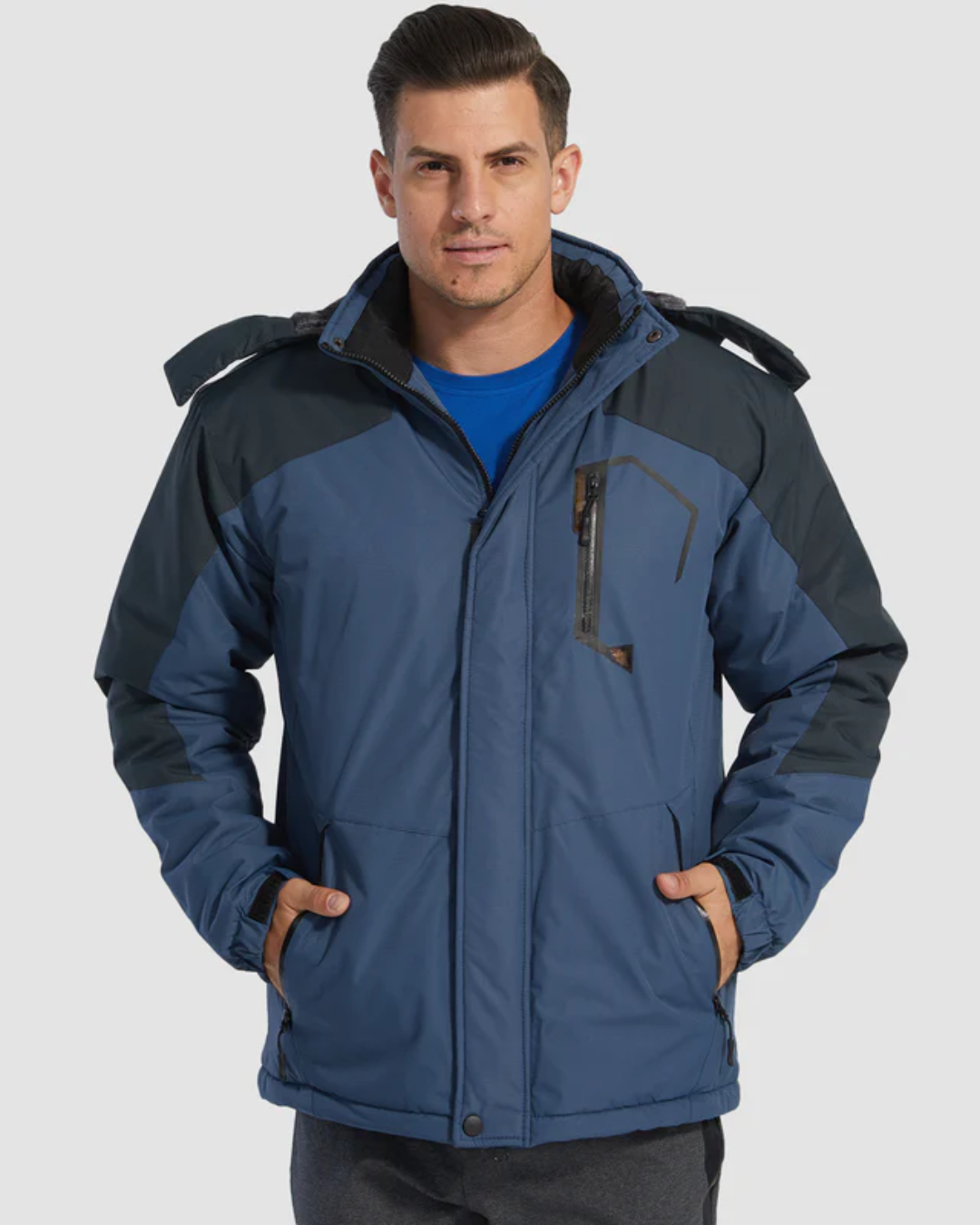 Geaca include mai multe buzunare localizate strategic cu închideri sigure, ideale pentru a păstra telefonul mobil, portofelul și alte obiecte esențiale. Acest lucru optimizează depozitarea și accesul rapid la obiectele personale.